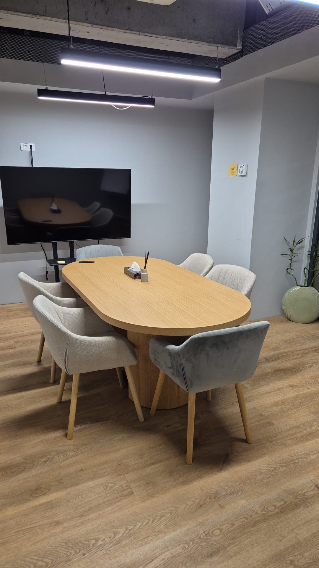Our meeting rooms are plug-and-play — equipped with 4K Smart TVs, whiteboards, flipcharts, office supplies, unlimited coffee, tea, and water. You get everything included, no hidden costs.